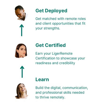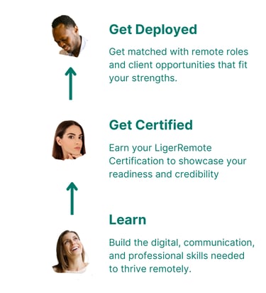"The Ligerremote Accelerator program helped me change my mindset from a fixed to a growth mindset. It taught me the following:1. Being an introvert doesn't stop me from being visible and positioning myself for career opportunities. 2. This program helped simplify and demystify the aspect of remote work I find stressful. 3. Also, the program provided technical knowledge of productivity tools to use in the remote workplace. 4. Finally, I learned the value of teamwork and collaboration. I'm so grateful for the relationships I built via this program. To everyone looking to transition to remote work, this program is one to get on."